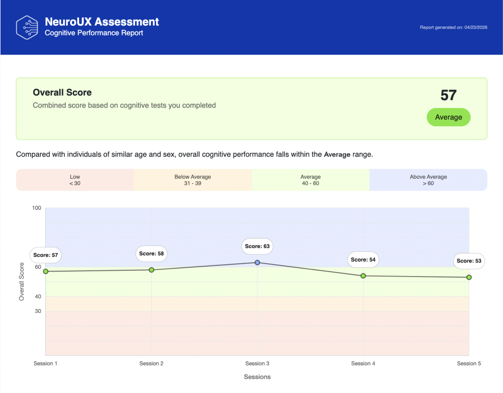 From validated assessments to automated reporting, NeuroUX streamlines the entire cognitive evaluation workflow.